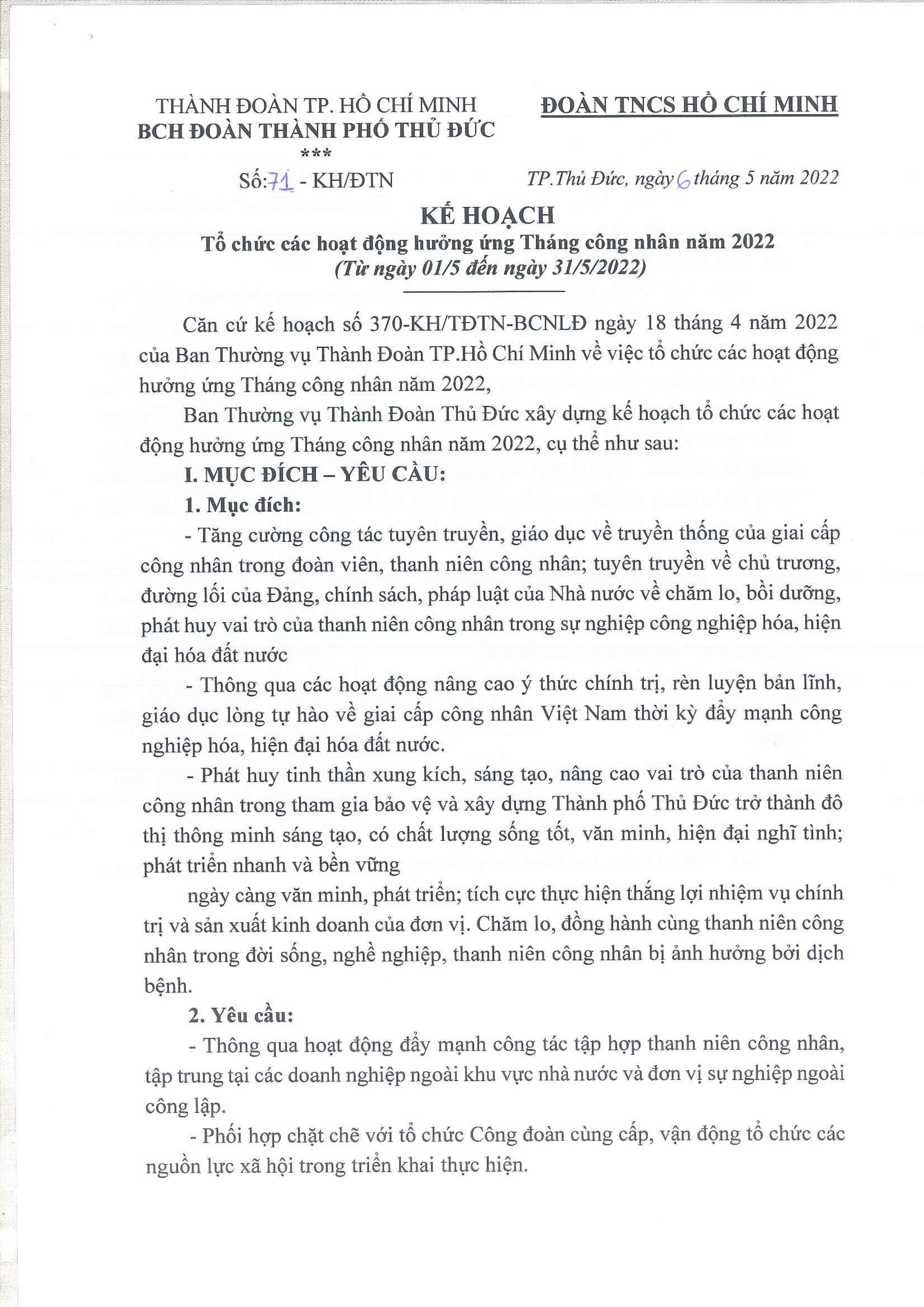 KẾ HOẠCH: Tổ chức các hoạt động hưởng ứng Tháng công nhân năm 2022 Bấm...
