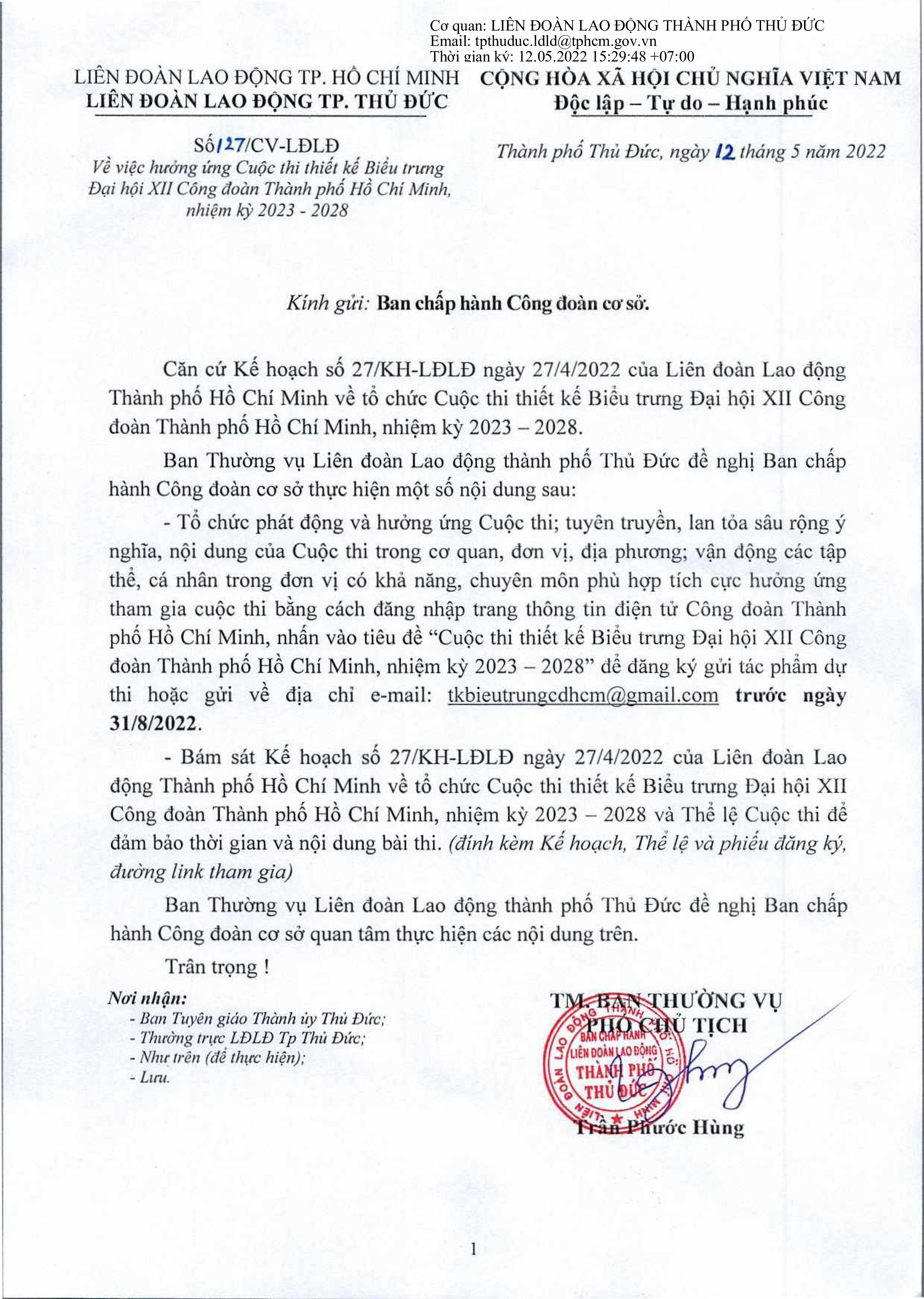 Cuộc thi thiết kế biểu trưng Đại hội XII Công Đoàn Thành Phố Hồ Chí Minh, nhiệm kỳ...