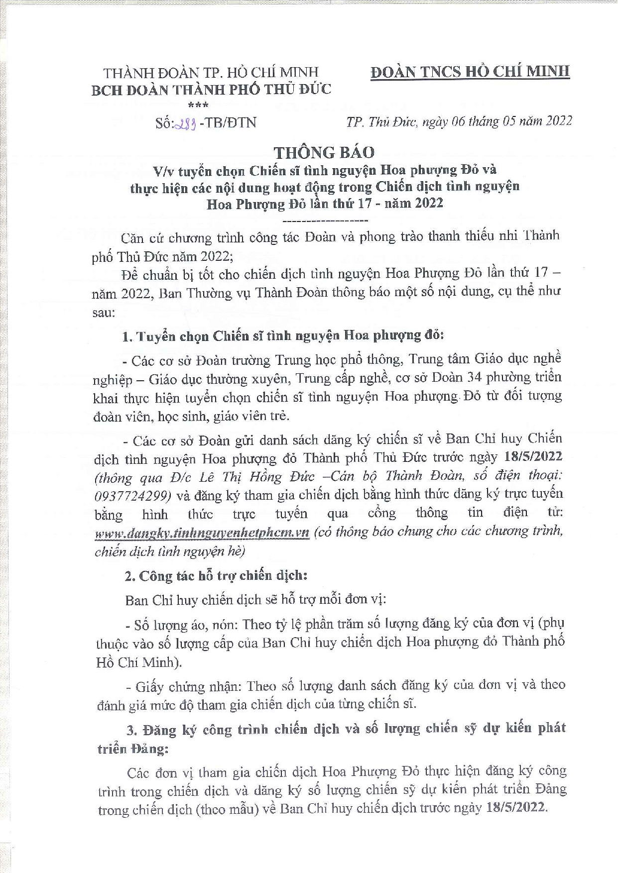 THÔNG BÁO: Tuyển chọn Chiến sĩ tình nguyện Hoa phượng đỏ và thực hiện các nội dung hoạt động Chiến dịch tình nguyện Hoa phượng đỏ lần thứ 17 – năm 2022
