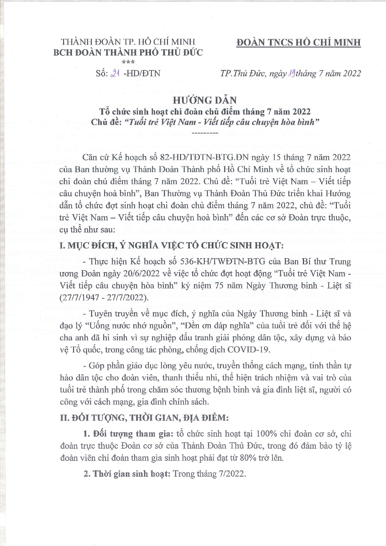 HƯỚNG DẪN: Sinh hoạt chi đoàn chủ điểm tháng 7 Bấm tải tài liệu: HD Sinh...