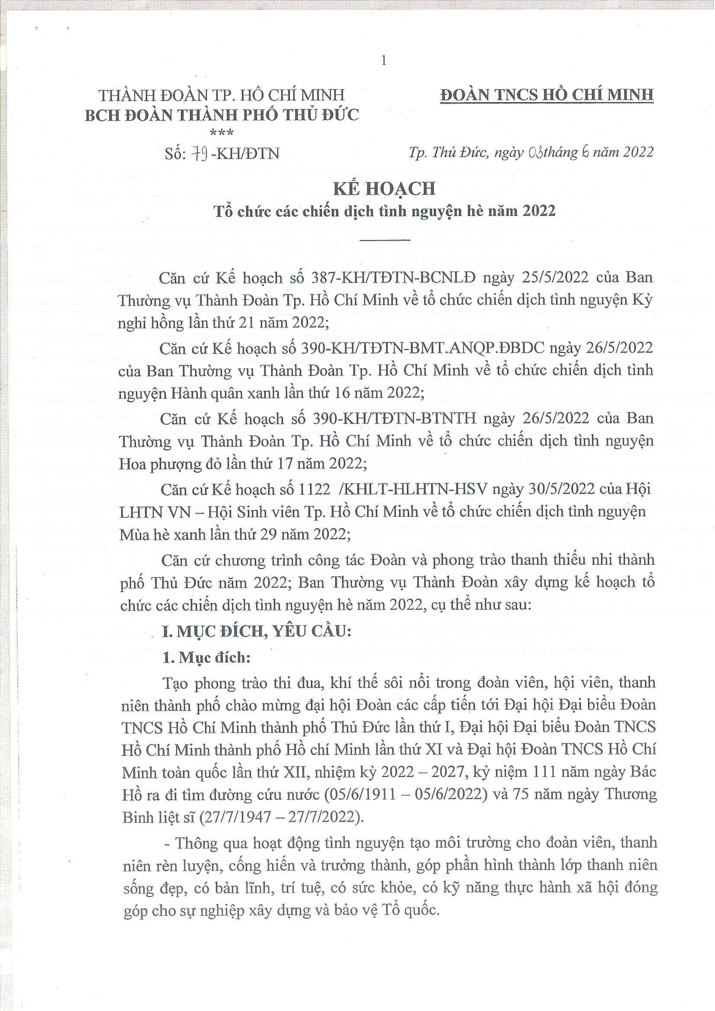 KẾ HOẠCH: Tổ chức các chiến dịch tình nguyện hè năm 2022 Bấm tải tài...