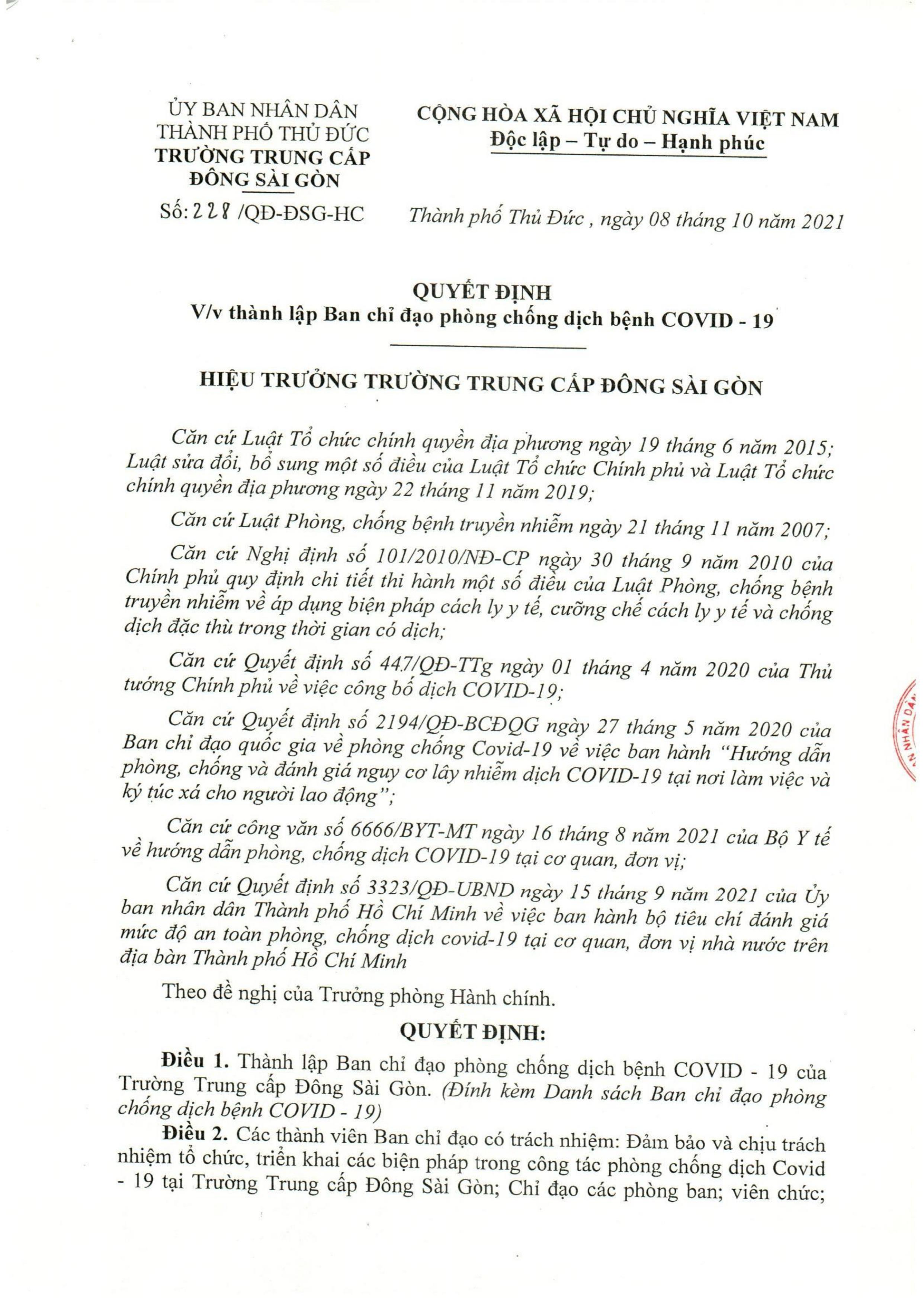 Quyết định thành lập Ban chỉ đạo phòng chống dịch Covid-19