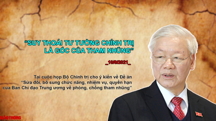 Ảnh: Tổng Bí thư Nguyễn Phú Trọng nhấn mạnh tham nhũng và suy thoái về tư tưởng chính trị, đạo đức, lối sống, “tự diễn biến”, “tự chuyển hóa” đều là những biểu hiện tiêu cực (Ảnh: Báo Giao thông)