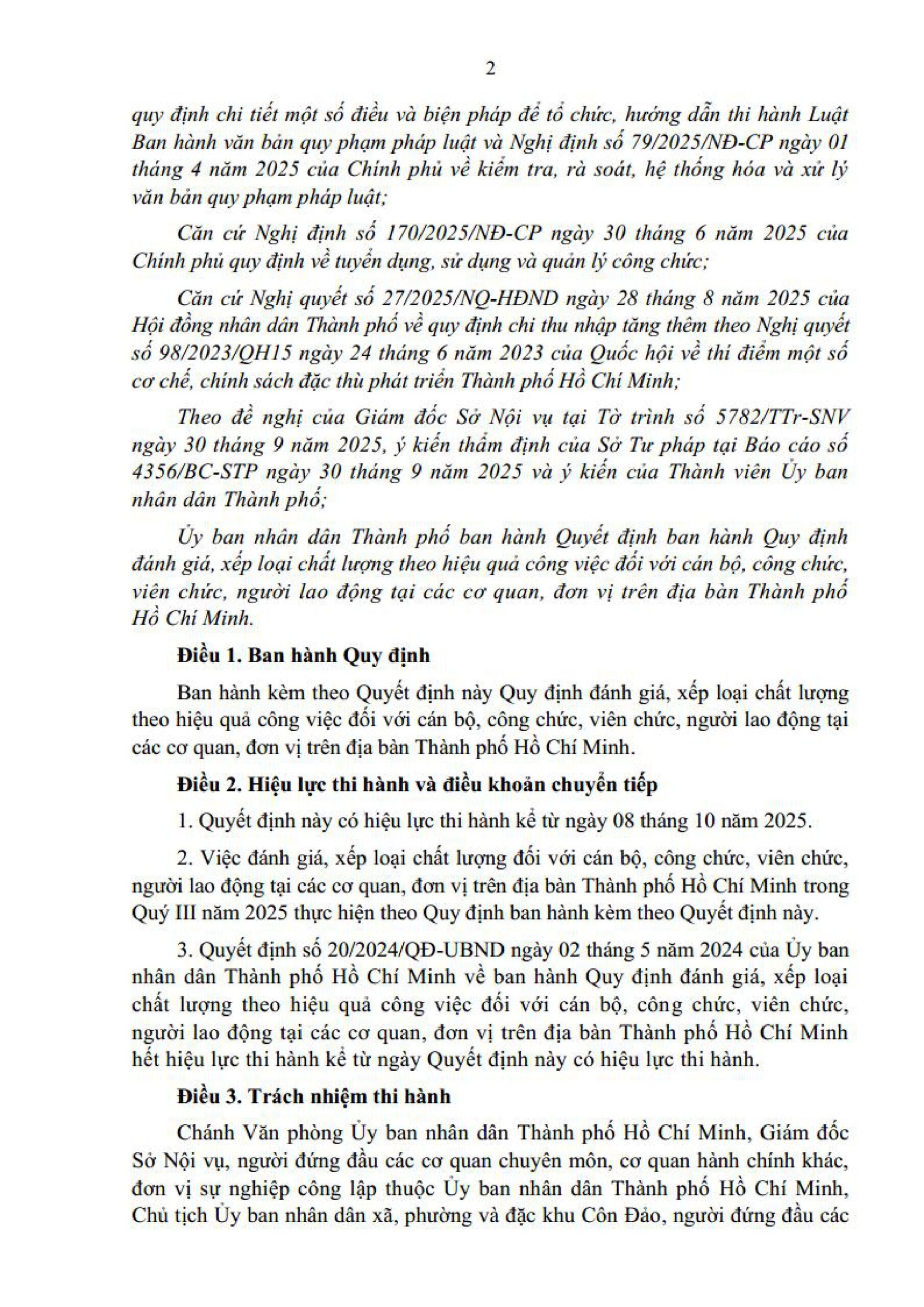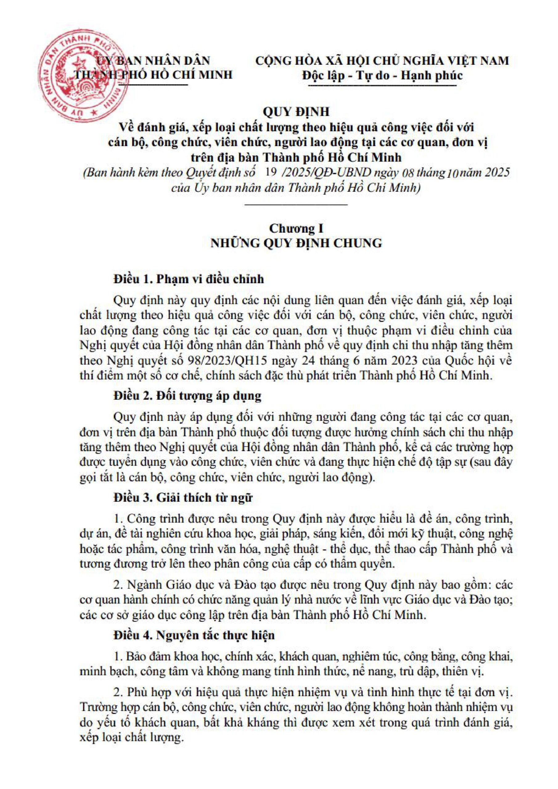 Bản tin, Bản tin - Hoạt động nội bộ, Tin TứcQUYẾT ĐỊNH Ban hành Quy định đánh giá, xếp loại chất lượng theo hiệu quả công việc đối với cán bộ, công chức, viên chức, người lao động tại các cơ quan, đơn vị trên địa bàn Thành phố Hồ Chí Minh