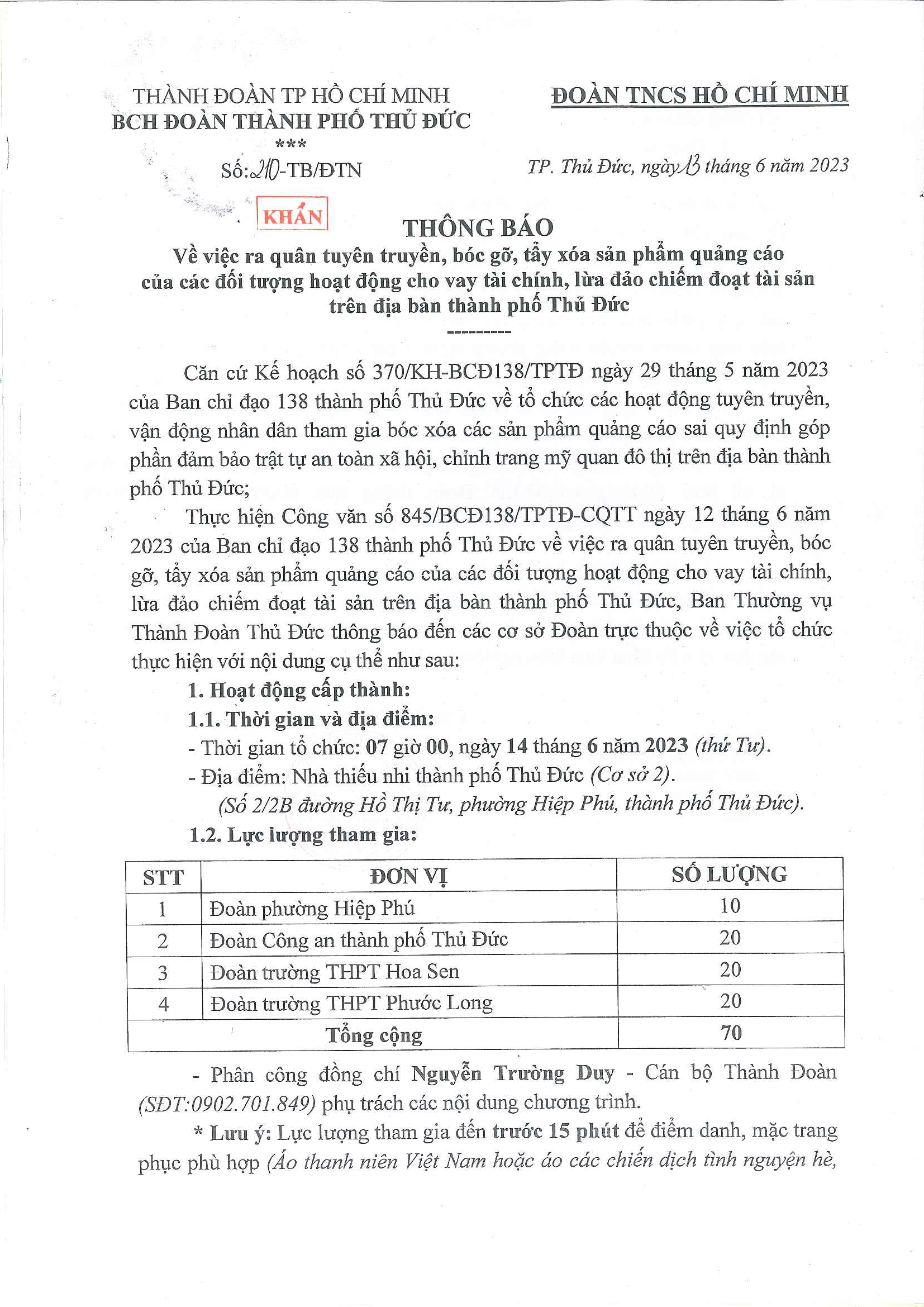 Căn cứ Kế hoạch số 31-KH/ĐTN ngày 05 tháng 05 năm 2023 của Ban thường...