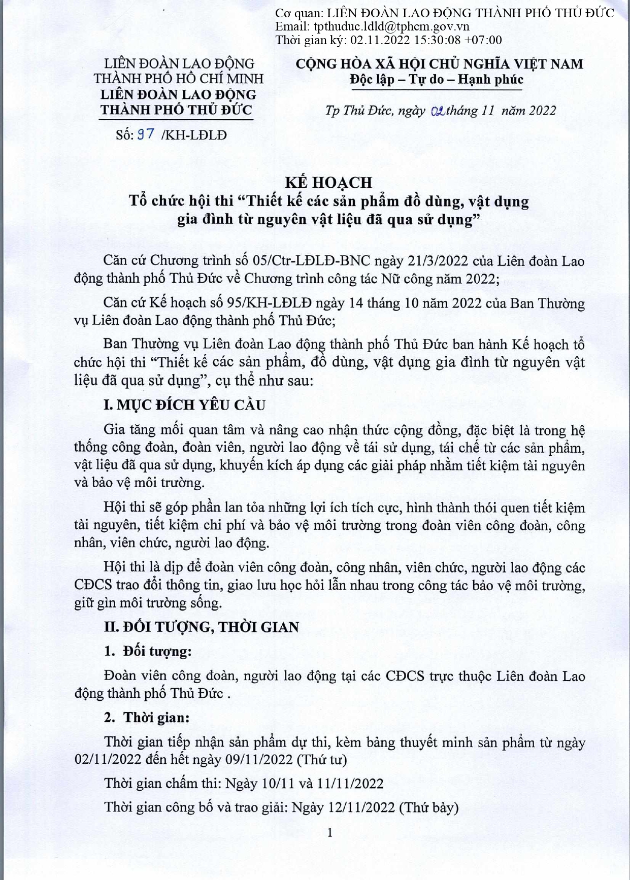 KẾ HOẠCH: Tổ chức Hội thi “ Thiết kế các sản phẩm đồ dùng, vật dụng gia đình từ nguyên vật liệu đã qua sử dụng ”