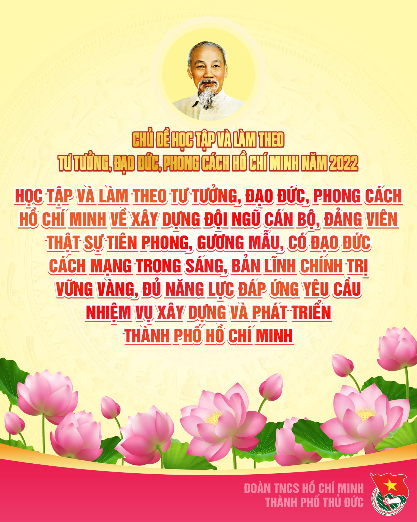 THÀNH ĐOÀN THỦ ĐỨC XIN TRÂN TRỌNG GIỚI THIỆU CHỦ ĐỀ HỌC TẬP VÀ LÀM THEO TƯ TƯỞNG, ĐẠO ĐỨC, PHONG CÁCH HỒ CHÍ MINH NĂM 2022