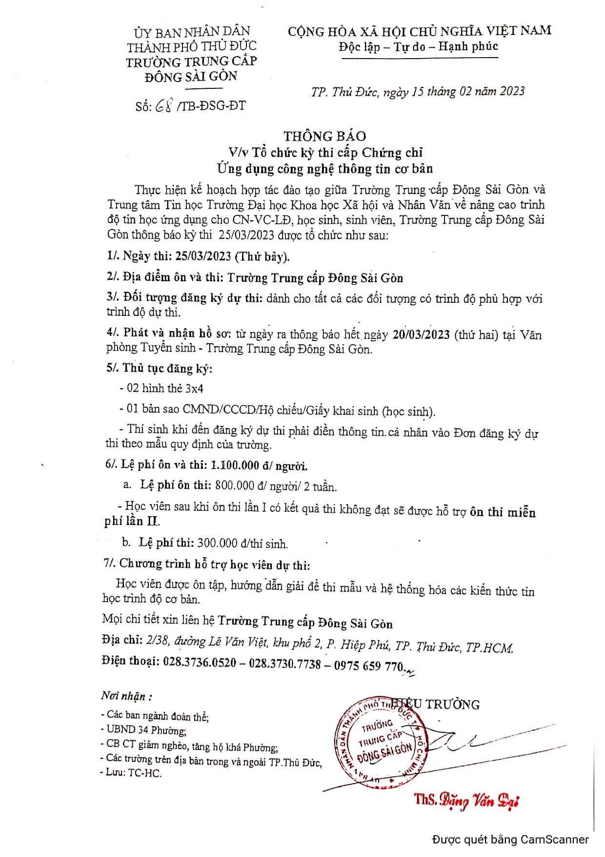 Triệu tập thí sinh và danh sách tham dự xét tuyển Trường Trung cấp Đông Sài Gòn 2023