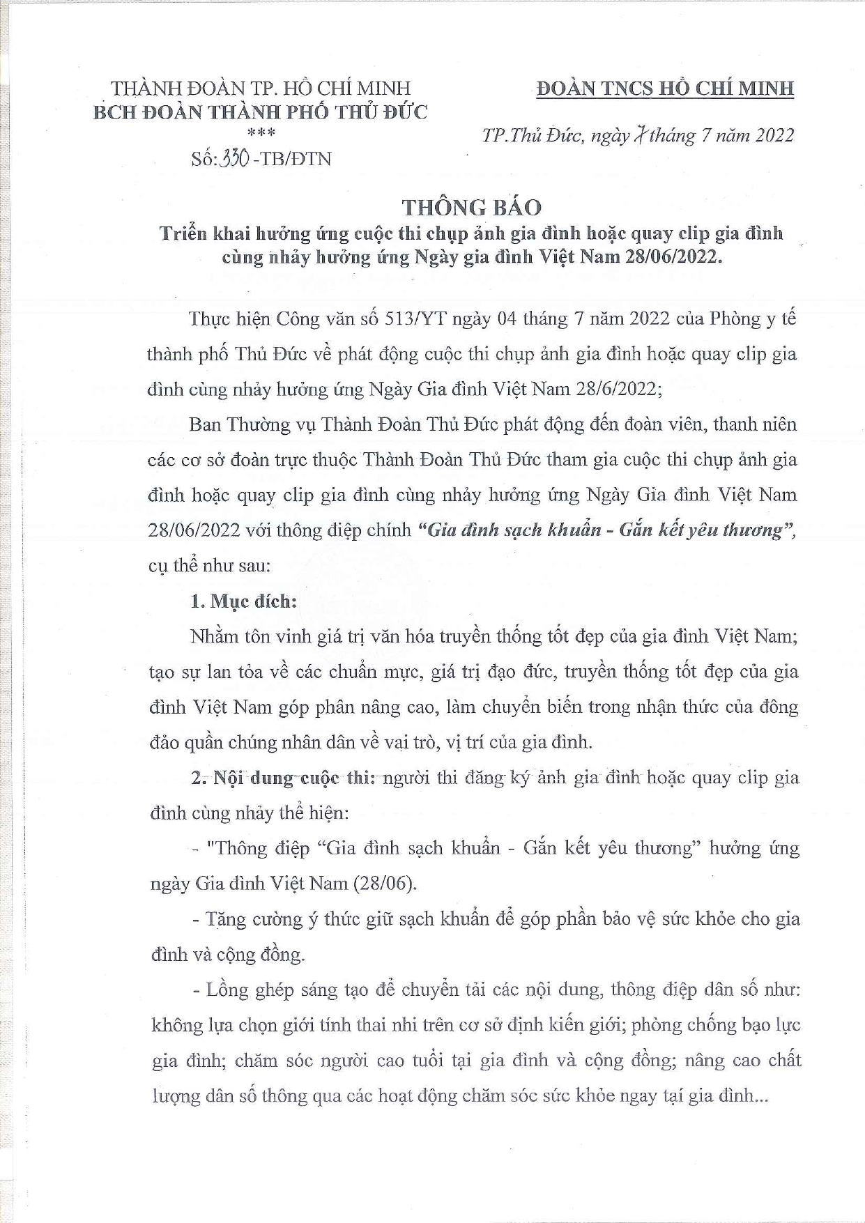 THÔNG BÁO: Triển khai hưởng ứng cuộc thi chụp ảnh quay clip gia đình