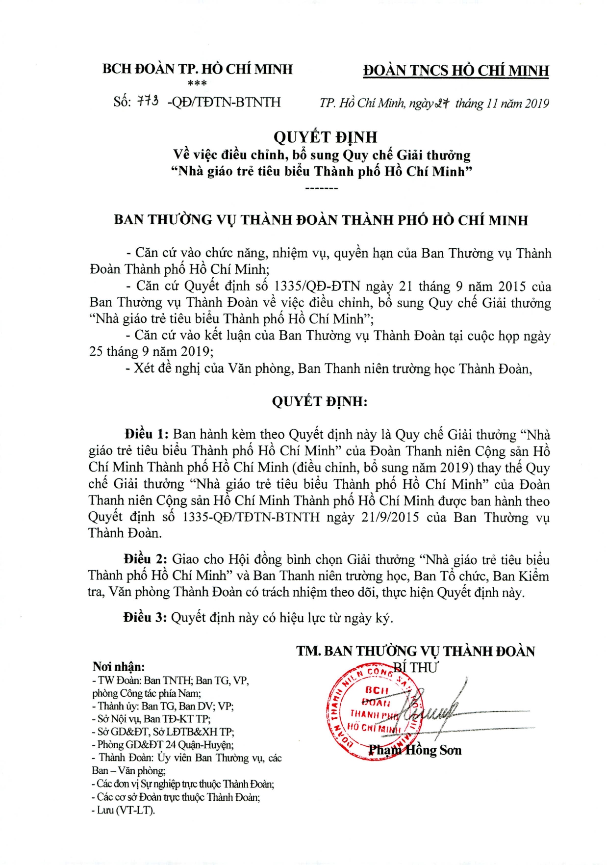 Thông báo phát động phong trào thi đua Nhà giáo trẻ tiêu biểu cấp thành phố năm học 2021-2022