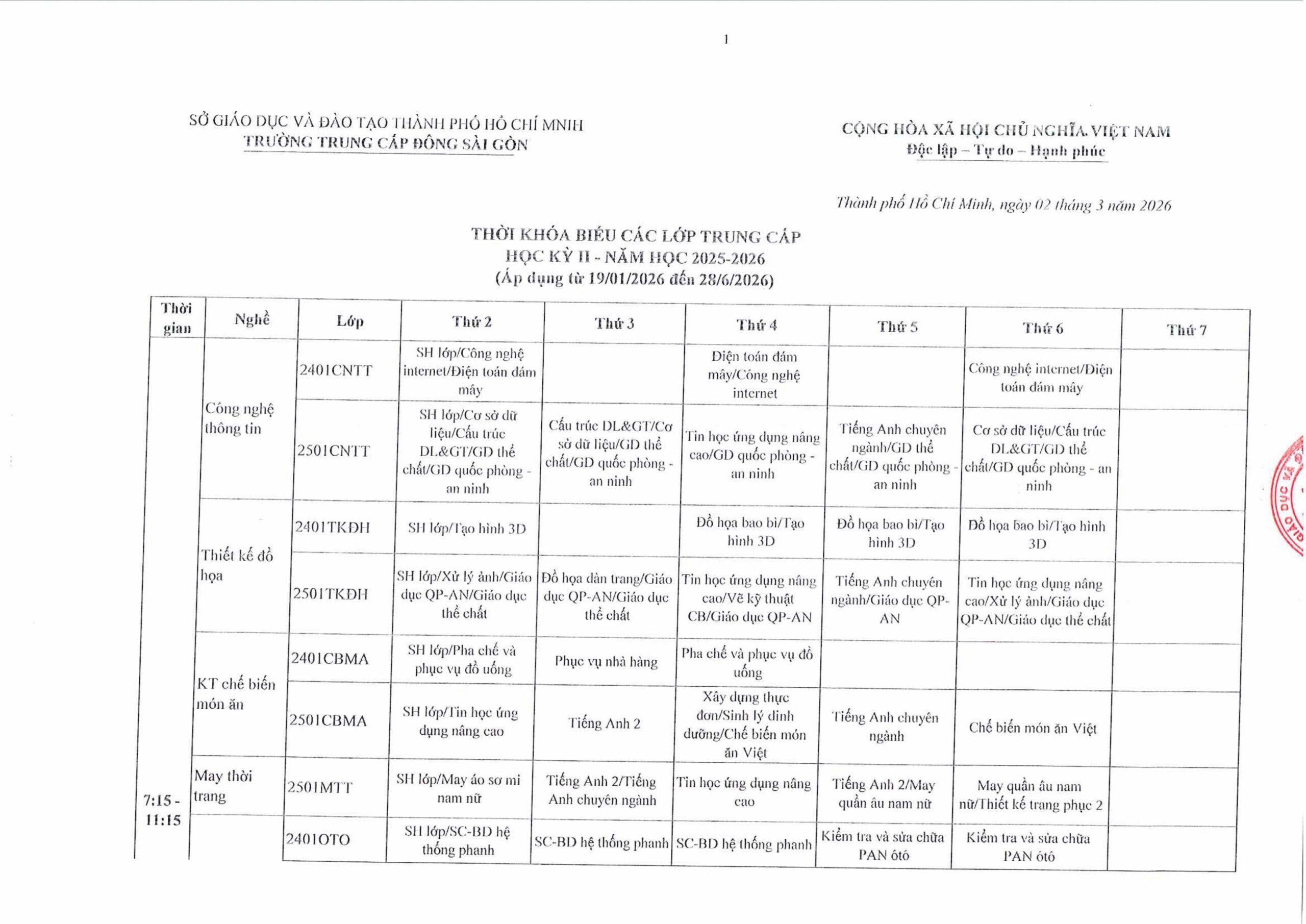 THÔNG BÁO (Về các khoản học phí, lệ phí đối với học sinh trung cấp Năm...