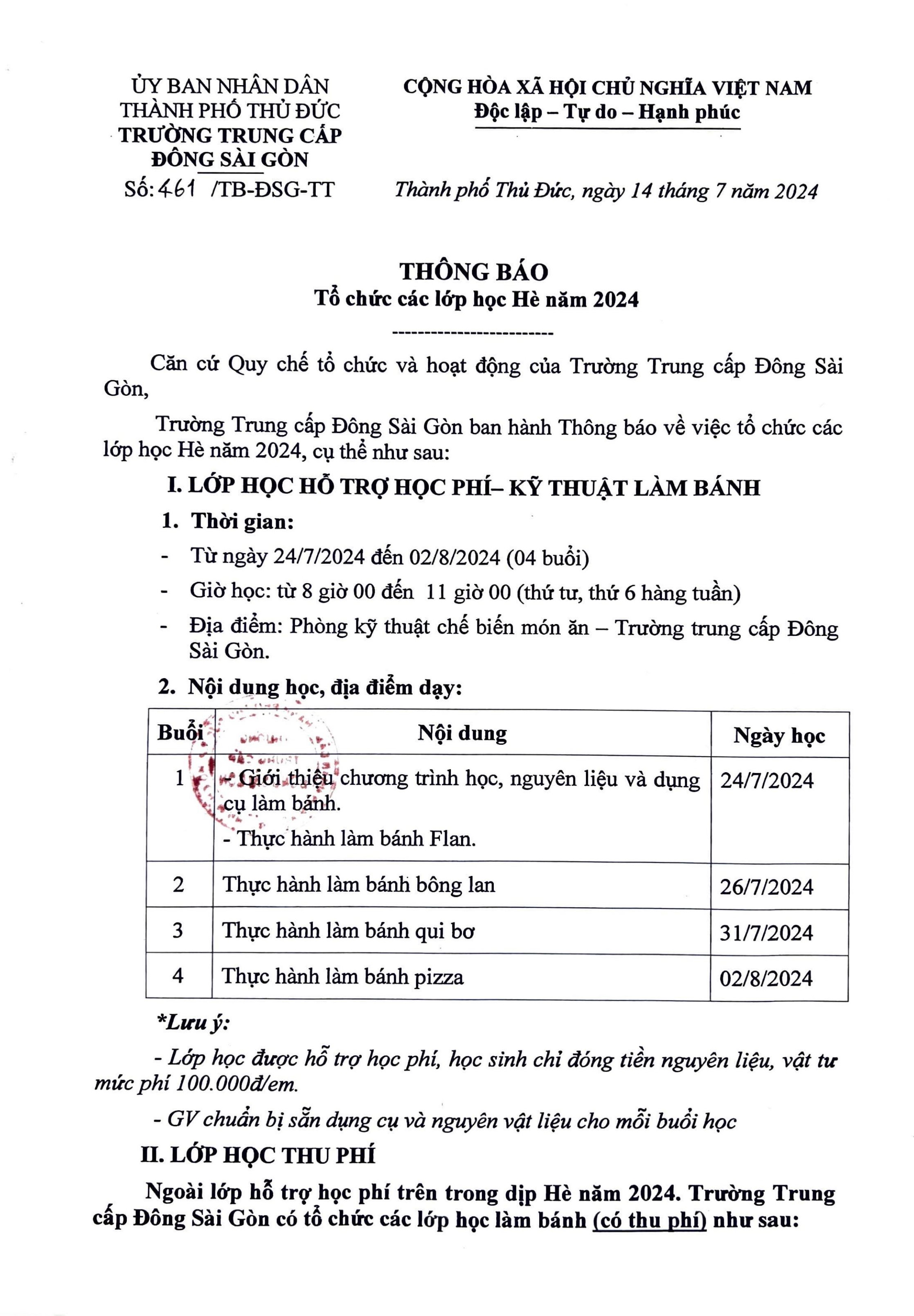 Trường Trung cấp Đông Sài Gòn đã tổ chức 01 Lớp làm bánh miễn phí...