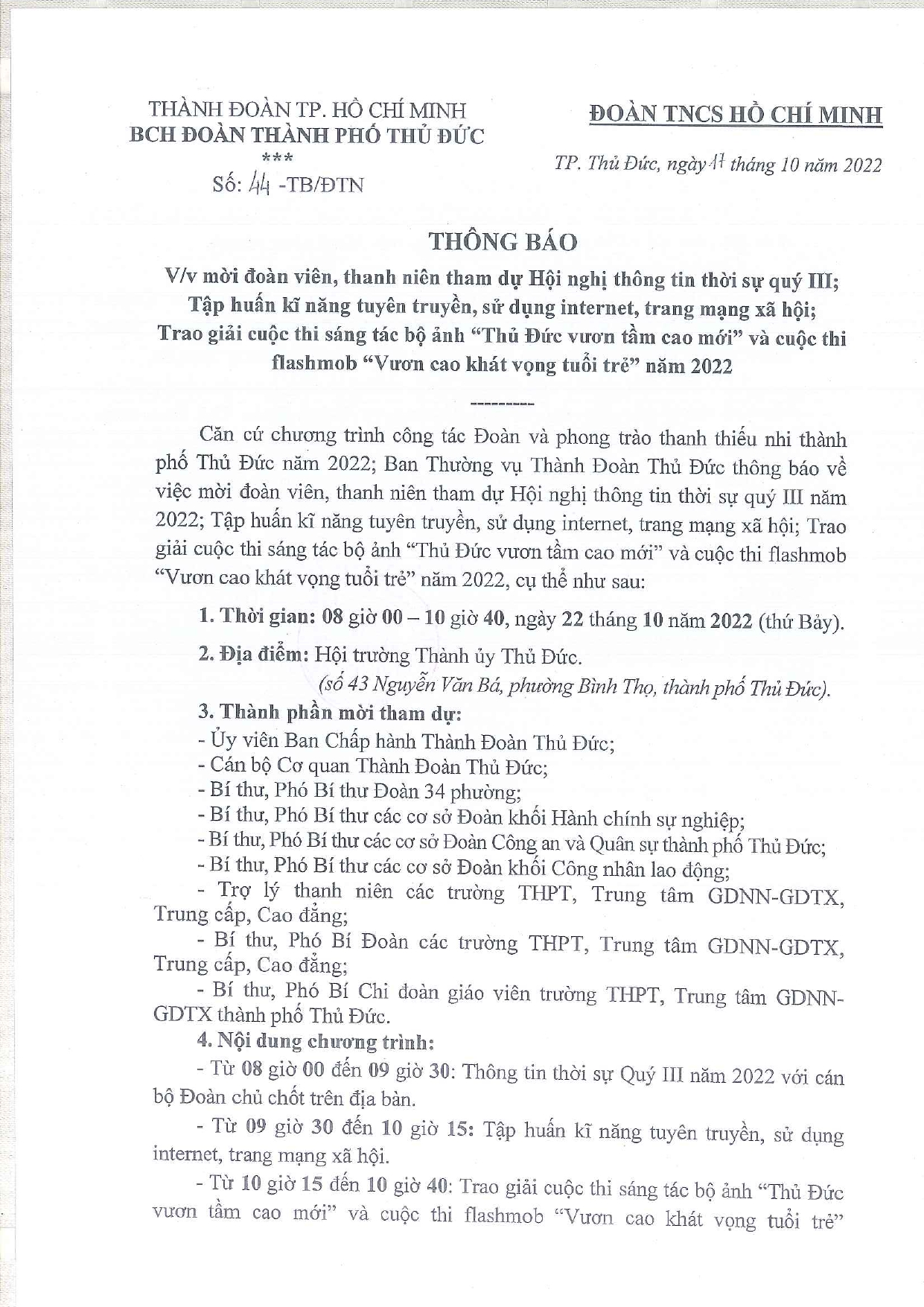 THÔNG BÁO: Mời đoàn viên, thanh niên tham dự Hội nghị thông tin thời sự quý III năm 2022