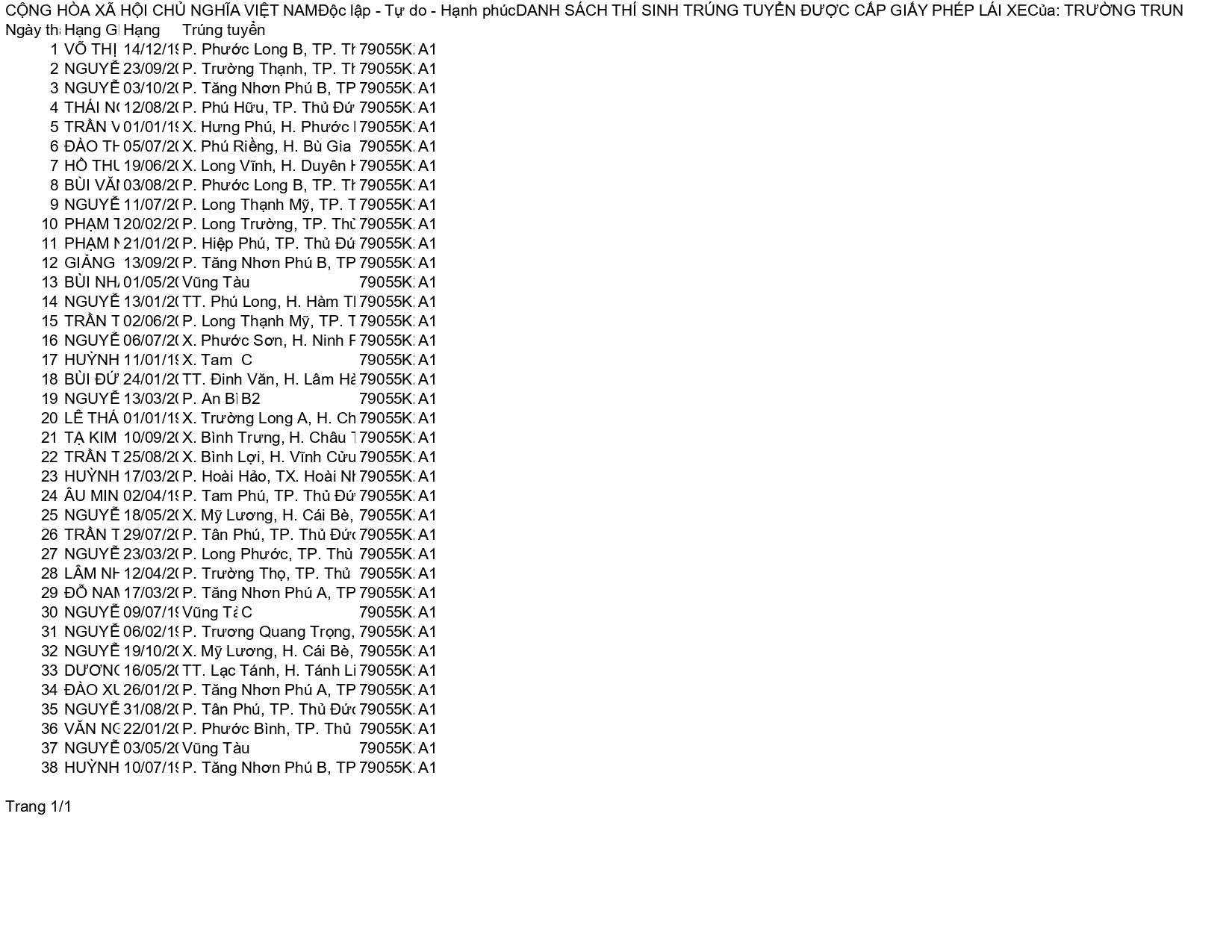 Danh Sách Học Viên Thi GPLX A1 Ngày 16/ 10 Đậu Rớt Vắng Bấm vào...