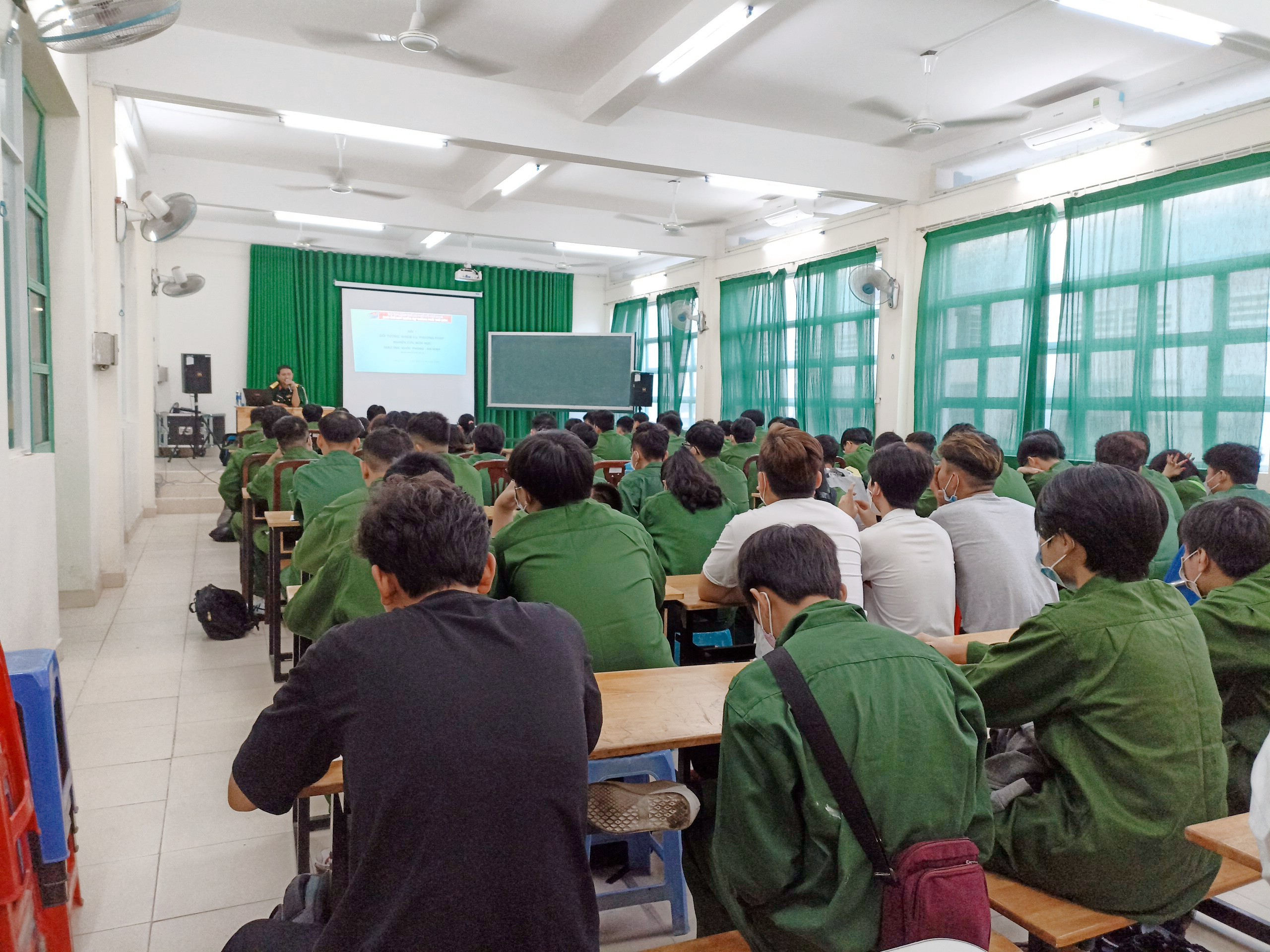 Buổi học lớp Giáo dục Quốc phòng An ninh tại trường trung cấp ĐSG