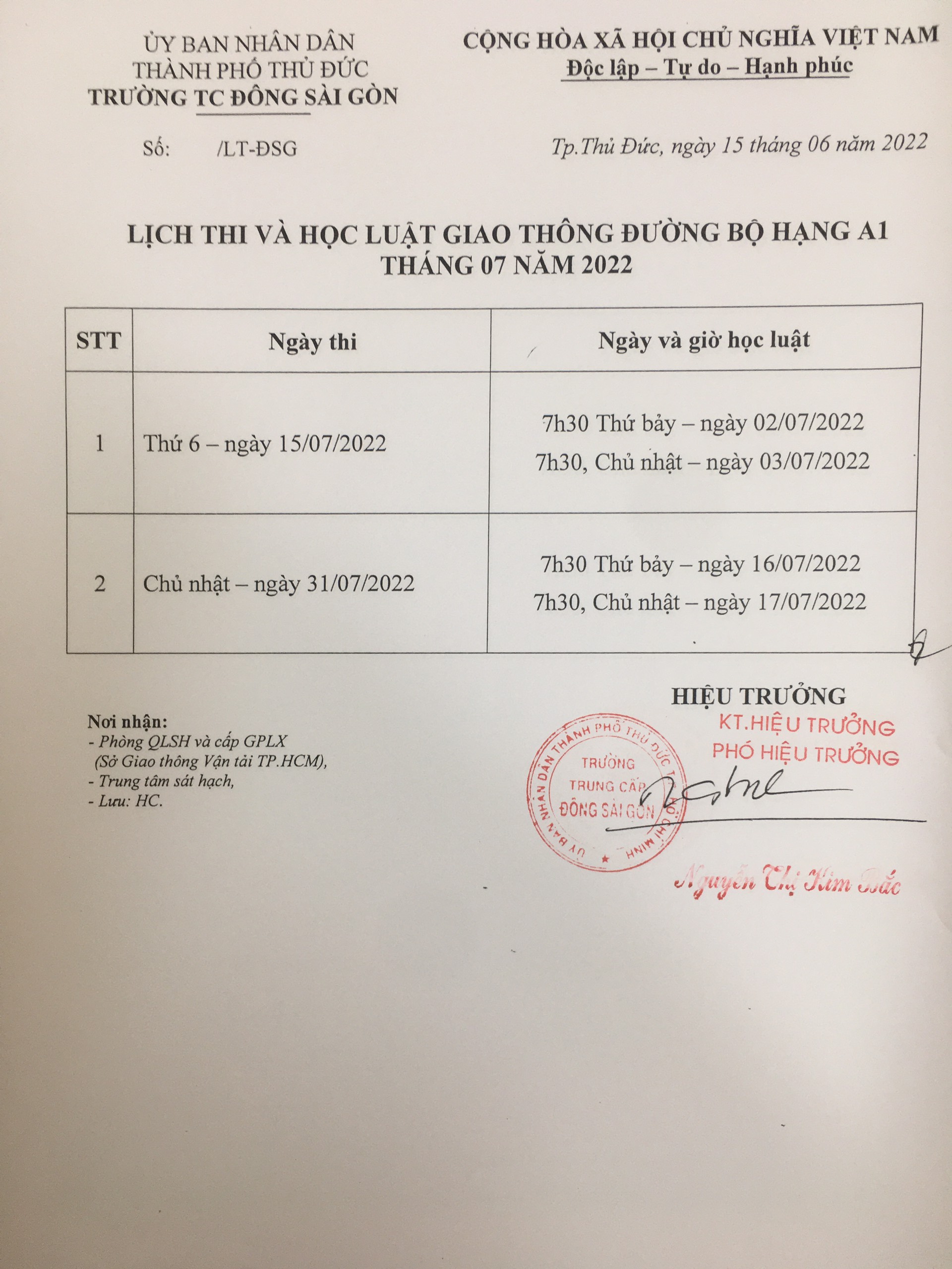 Lịch thi và học luật giao thông đường bộ hạng A1 tháng 10 năm 2022